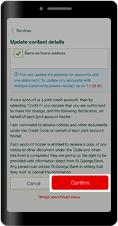 You can update your email, phone number and mailing address directly in the St.George App and Internet Banking.