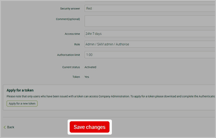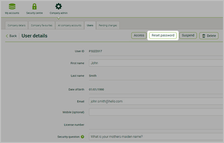 - Select Suspend to temporarily prevent the user from logging into Business Banking Online