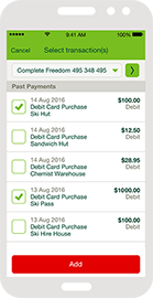 Select the transaction you’d like to split with the group. You can add more than one transaction for each group.