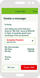 You can add people from your contact list or enter their name and mobile number. Choose the split amount and send an SMS to request payment.*