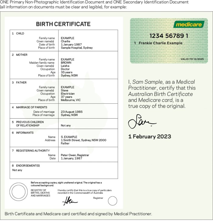 Please provide certified copies of the relevant identification documents as listed on the form, please refer to the ‘What to do’ section above. The certifier should certify that the photocopy is a true and correct copy of the original by writing on and signing the photocopy. Please ensure the images in your ID documents are clear and easy to read.