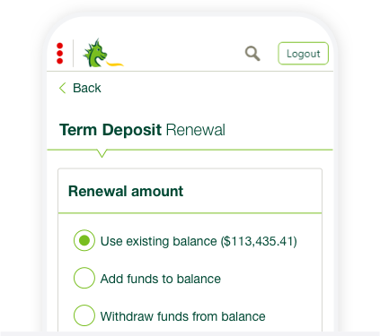 Manage your Term Deposit online choosing to renew or withdraw.