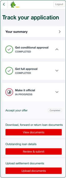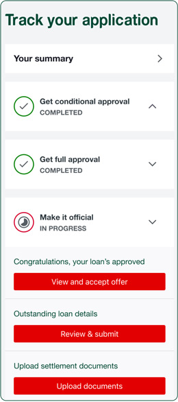 On the main page, go to your home loan progress bar > Under Make it official > View and accept offer