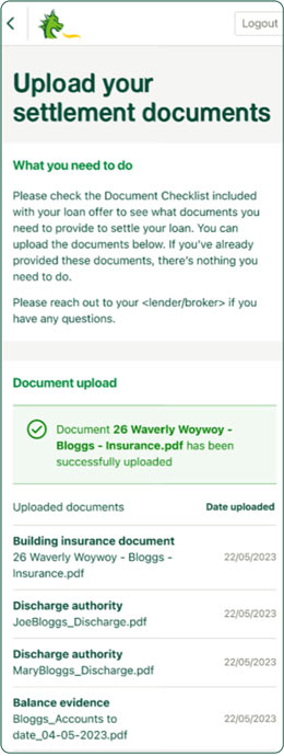 - Or go to the Track your application dashboard, go to Make it official > Upload settlement documents to see the list.