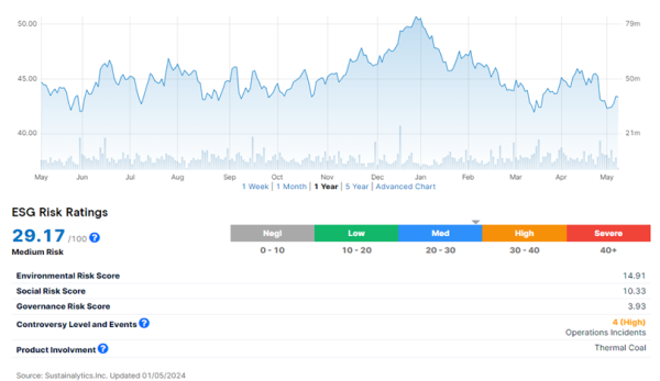 1ESG Risk Ratings are provided by Sustainalytics. Sustainalytics is a subsidiary of Morningstar Inc.