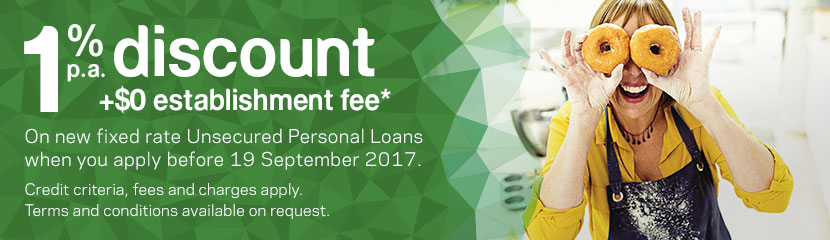 ^Comparison rates: Comparison rates help you understand the true cost of a loan. All comparison rate examples shown are for a personal loan amount of $30,000 and a term of 5 years. WARNING: Comparison rates apply only to the example or examples given and may not include all fees and charges. Different loan amounts and terms will result in different comparison rates. Costs such as loan discharge fees, and cost savings such as fee waivers, are not included in the comparison rate but may influence the cost of the loan.
